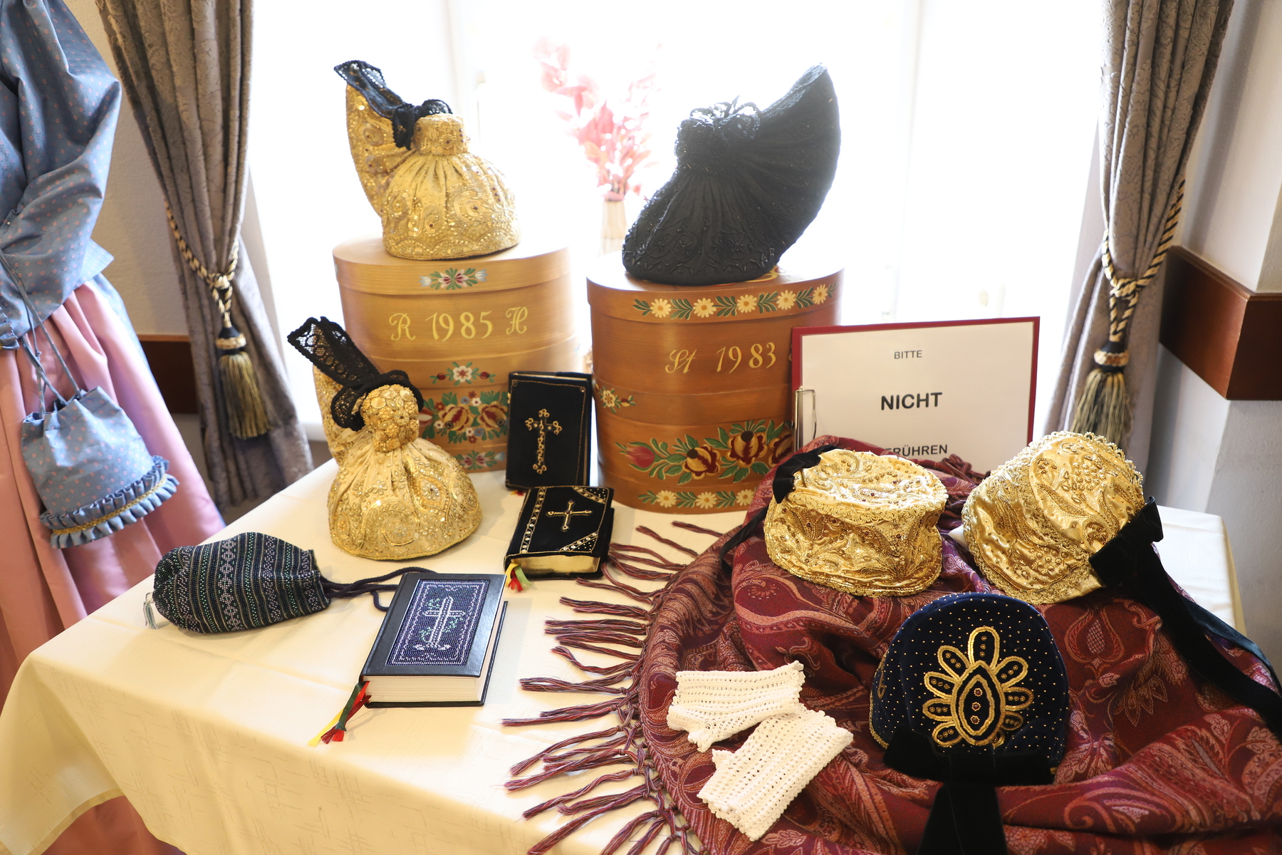 Eine Modeschau mit den verschiedensten Kopfbedeckungen war ein Highlight der Jubelveranstaltung.